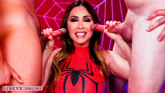 Statuesque, stacked stunner Kianna Dior portrays The Amazing SpiderGirl in a special parody scene for Halloween! The long-haired MILF beauty's skin-tight, red-and-black disguise shows off her big boobs. She takes off her mask, drawing two hard-ons (and the audience) into her web! Hungering to give blowjobs, Kianna kneels between two naked, ready erections. When she's not wetly sucking Jonni Darkko and Jay Smooth's hard boners, she's talking d...